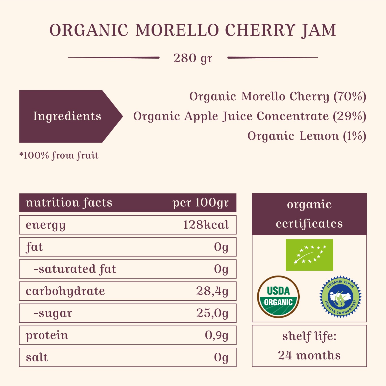 - Ingredients: Organic Morello Cherry (70%), Organic Apple Juice Concentrate (29%), Organic Lemon(1%)
